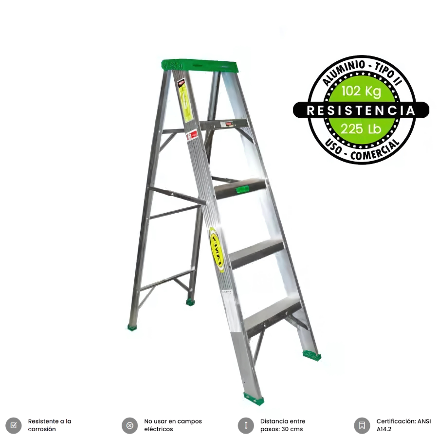 Las escaleras tipo tijera FANES fabricadas en aluminio son escaleras auto-soportables y no requieren de una superficie de apoyo.